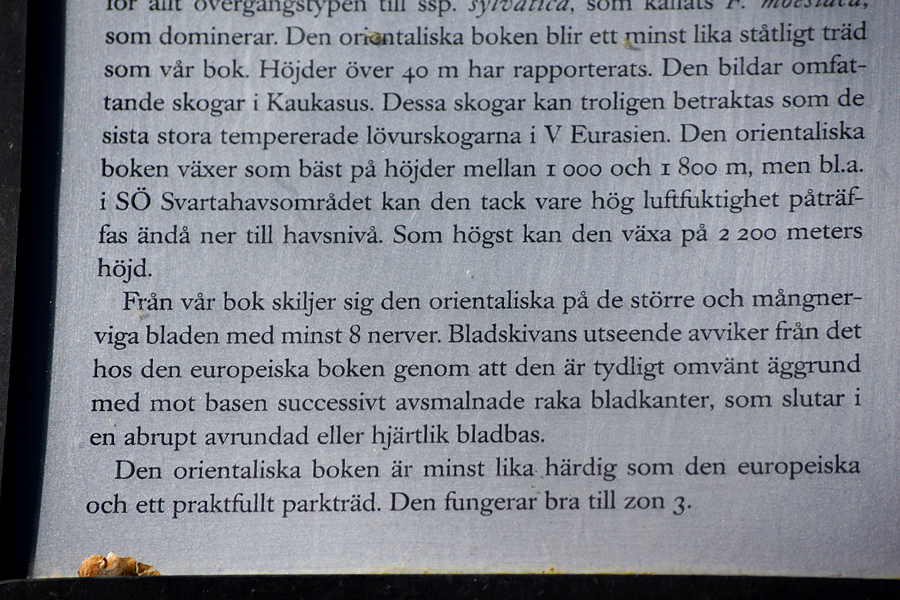 Japansk rönnHärliga blad!Som sagt, färgen är ju mer höstlik än vårlik, men så perfekt formade blad.Där finns också ett litet område med Orientalisk bok, så vacker. Vår vanliga bok är inte utslagen ännu. För den som är intresserad så kan du läsa lite om den orientaliska boken här nedan:Och det här är Bergkörsbär, också vackra blommor. Vid gynnsamma förhållanden kan den vara överblommad på två dagar, står det på skylten om dem. Underbart är kort! 💚Inte riktigt säker på om detta också är körsbärsblommor, men jag tror det. Hittade ingen skylt här 🙂Och björkarna har fått musöron. Det rödbruna i bilden är pors som blommar.