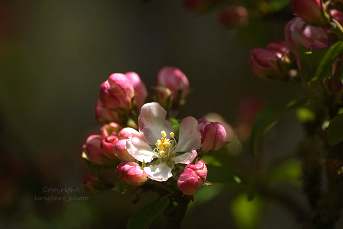 För flera veckor sedan så plockade jag med mig några körsbärskvistar in. De tar lång tid på sig. Kanske i tidigaste laget att plocka in dem, men de har kommit en bit på väg i alla fall.