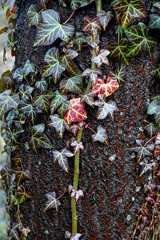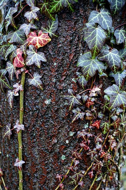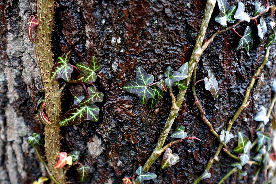 Murgrönan sätter verkligen fast sig ordentligt på trädstammen och sprider ut sina ”grenar”, som man kan se tydligt på första bilden i andra raden.