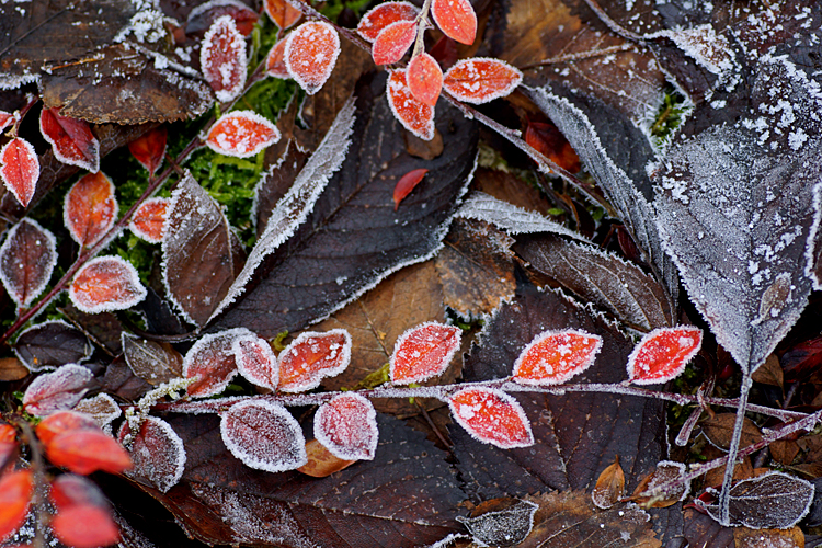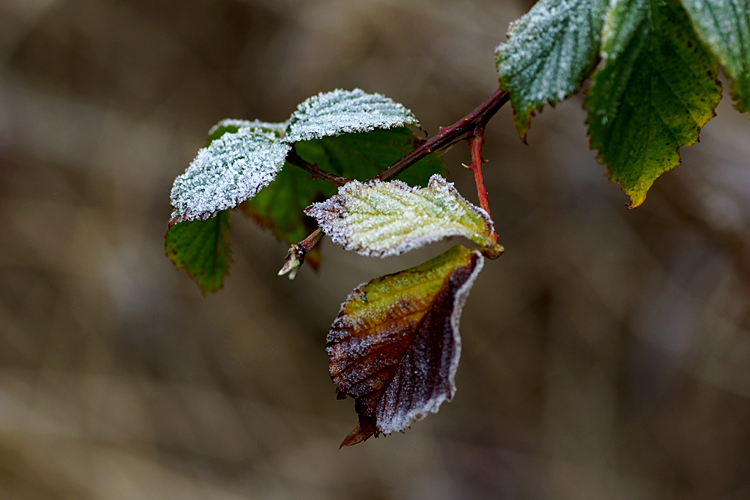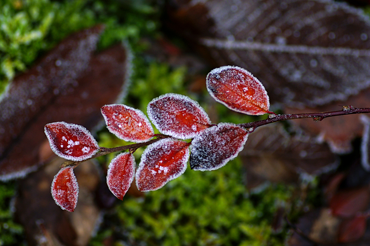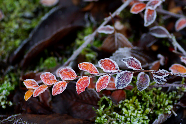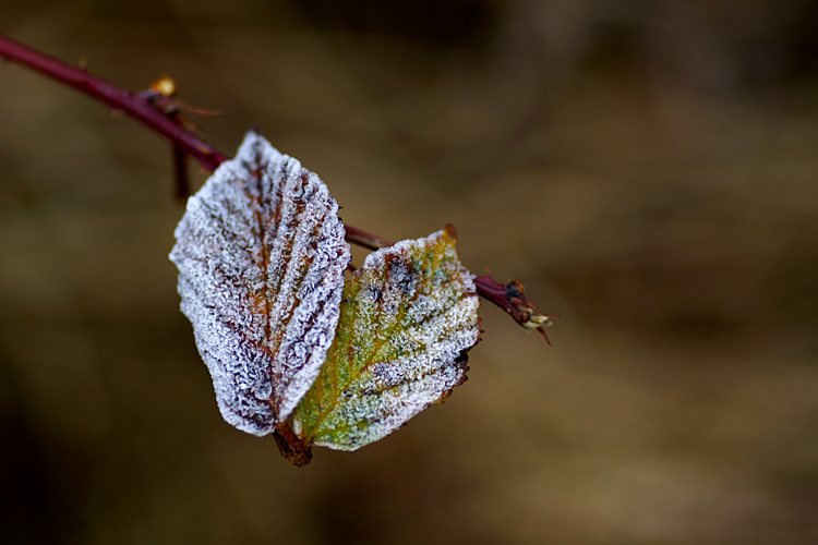 Någon snö har vi inte fått här men frost har vi. Så jag tänkte att jag måste ge mig ut på lite frostjakt med makrot på kameran. Det är så vackert med frost som klär in blad och annat. Nu var det inte så jättemycket frost men några frostkanderade blad fann jag i alla fall. Så här kommer dom.