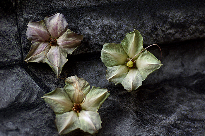 Tänk vilka vackra konstverk naturen själv skapar! Titta bara på de här vackra ”stjärnorna” från klockrankans blommor. Det är själva blomsterfodret som blir kvar när blommorna vissnat. Lite svårfotograferade var de, provade alla möjliga vinklar och bakgrunder och fastnade till slut för denna bilden.
